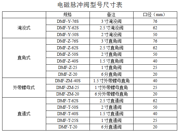 常用的脈沖閥有三類:直角脈沖閥、淹沒式脈沖閥、和直通脈沖閥。