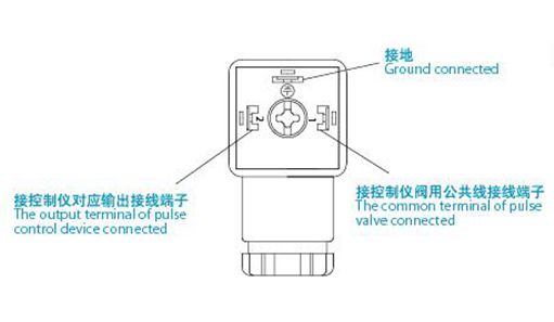 2、接地線能夠不接,操控線按順序接上脈沖操控儀,多個脈沖電磁閥共用線能夠串聯在一起進入脈沖控制儀共用端子。