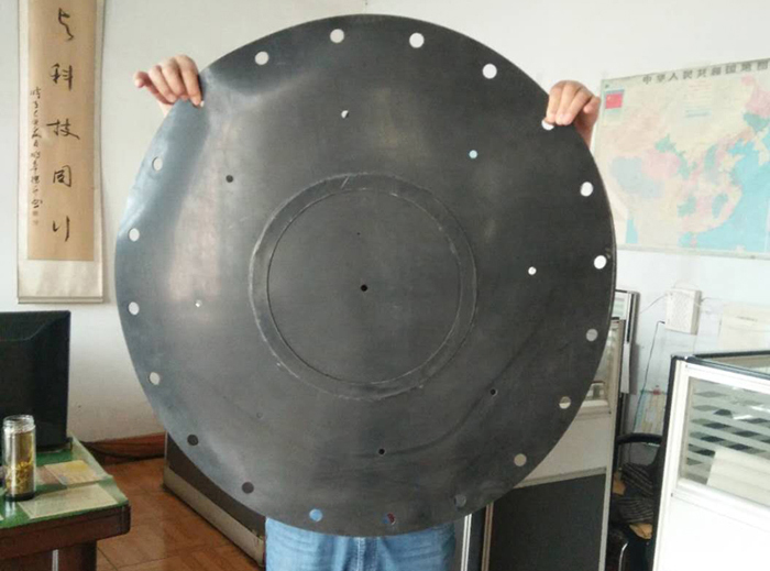 采用丁青橡膠加布硫化而成,厚度在0.8-3mm之間,膜片夾在鐵包膠和鋁板中間螺絲固定,機械燜壓。以防使用中出現螺絲松動。