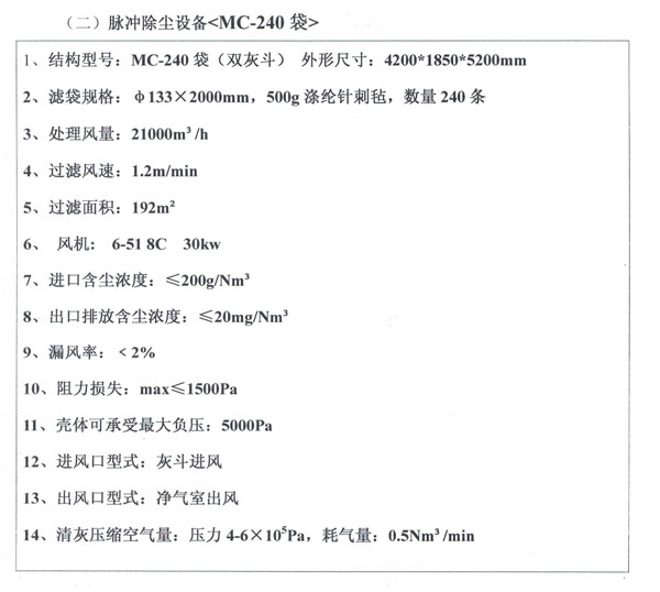 MC脈沖布袋除塵器的的基本結構:主要由五部分組成上箱體:由可掀起的蓋板和出風口組成。中箱體:由多孔板、濾袋裝置和文氏管組成。下箱體:由進風口、灰斗和檢查門組成。排灰系統:由減速裝置和輸灰、排灰裝置組成。噴吹系統:由控制儀、控制閥、脈沖閥、噴吹管、氣包和防護裝置組成。