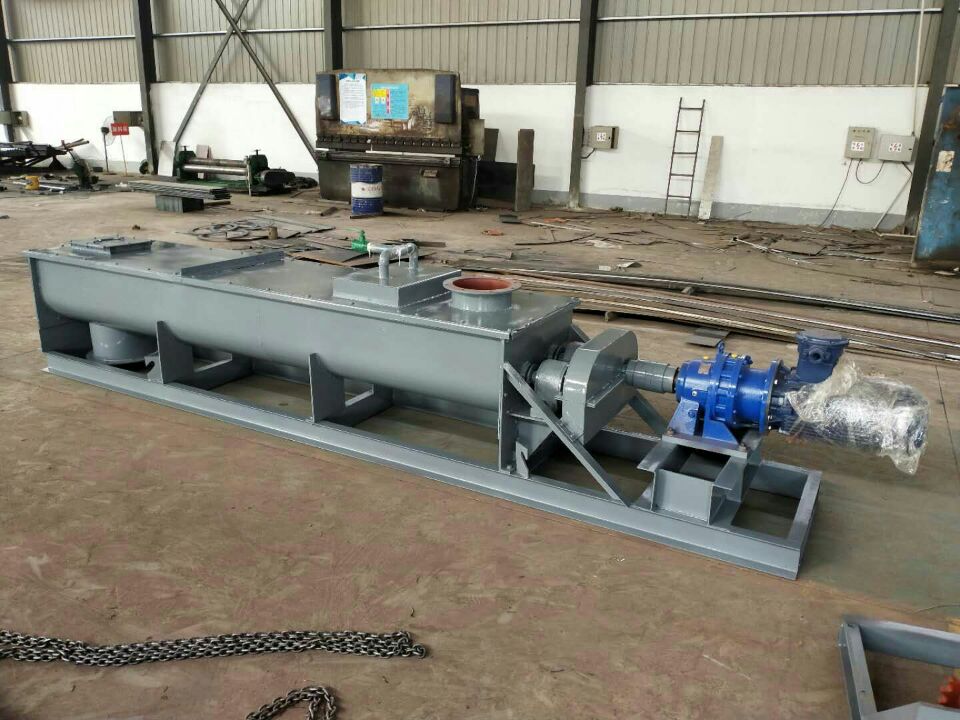 SJ型雙軸攪拌機是將粉狀物料進行噴水攪拌、混合設備。主要使用在火力發電廠的除塵器下、也可供化工冶金、礦山、建材等行業使用。通過控制加水量,以達到合適的濕度要求。采用兩組螺旋葉片進行攪拌,具有攪拌率高,占地面積少。螺旋葉片采用高耐磨特種合金或復合陶瓷,使用壽命長等特點。雙軸攪拌機采用擺線針輪減速器傳動,轉動平穩,噪音低。雙軸攪拌機從頂部進料,底部排料,結構合理。各結合面之間的密封嚴密,運行平穩。雙軸攪拌機設有加濕噴水系統,_噴水均勻,調節供水量來滿足需要。